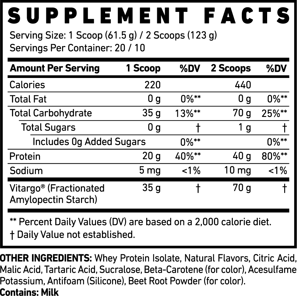 • Carb Source: Vitargo® (fractionated amylopectin starch)